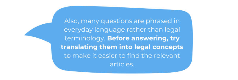 If a question allows for multiple interpretations, structure your answer accordingly. Explain the different possible outcomes based on legal circumstances or alternative provisions. Your answer should always be supported by legal references. If you don’t cite the relevant articles or general conditions, you’re likely missing an important aspect.
