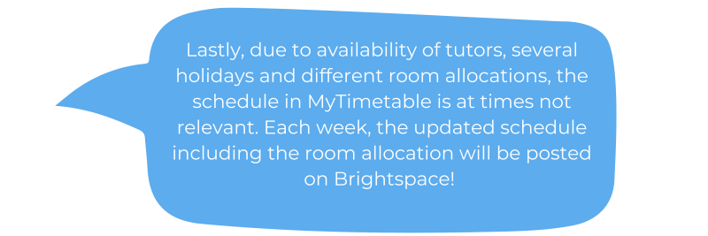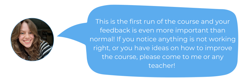 That way, your suggestions and improvements can be implemented during this quarter. You can also do this by joining the feedback group, but just speaking with your tutors or me is also great!