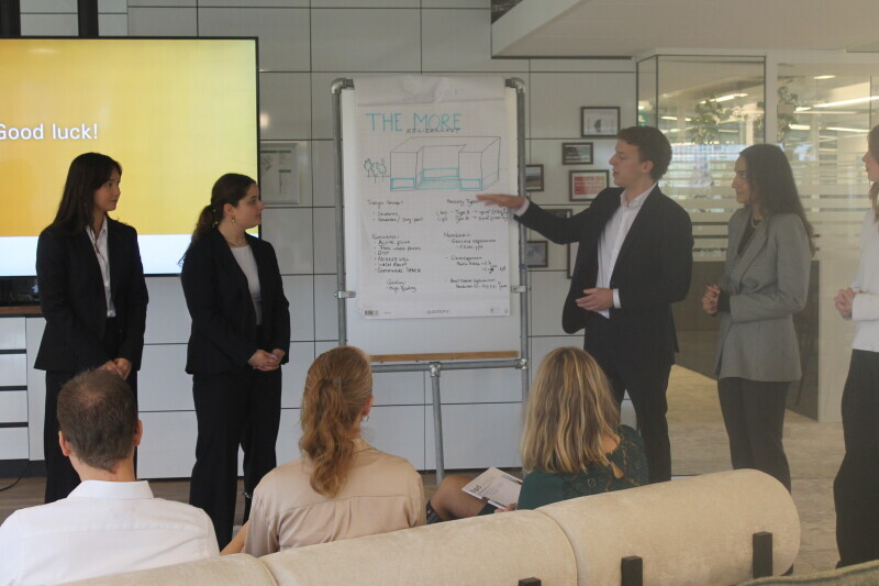 We began at BPD in Delft, where we worked in groups on a case study about a neighbourhood in The Hague. The focus was on feasibility and choosing suitable housing types for the area. Each group presented their proposal, after which a short discussion followed and a winning idea was chosen. We then had lunch at the office before travelling to Amsterdam.